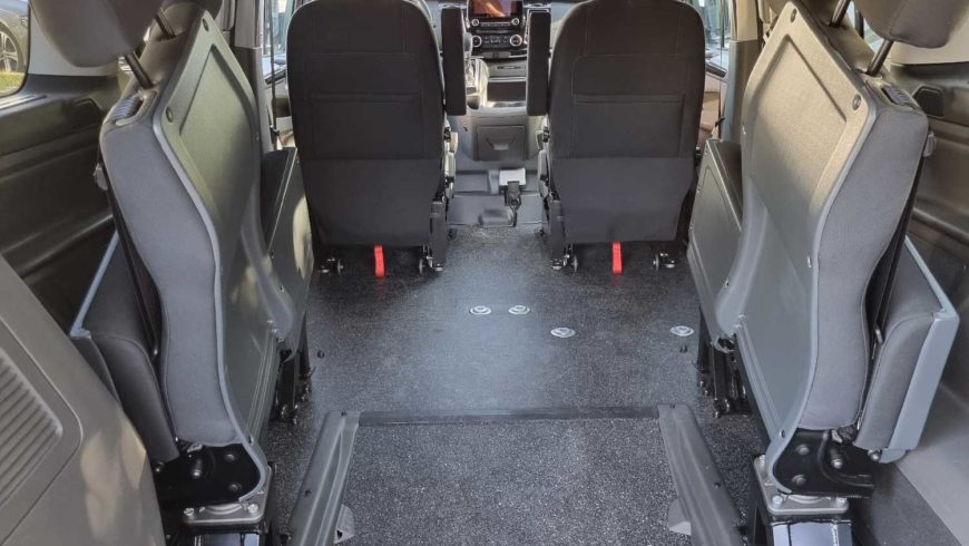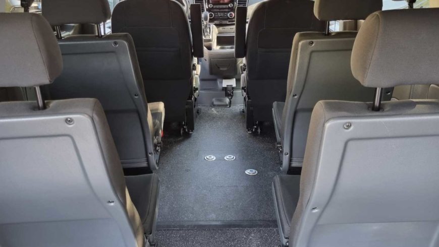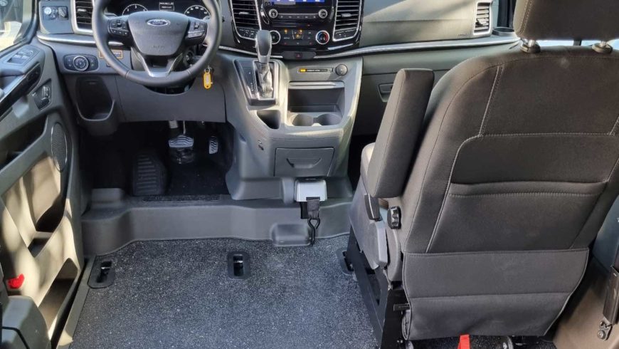 Doté de 4 sièges rabattables en places arrières, un système de fixation de fauteuil en place avant passager 2 enrouleurs à blocage électrique et deux enrouleurs à crochet manuel pour l'arrière. Une fixation de fauteuil à commande électrique peut être installée à la place conducteur pour une conduite en fauteuil roulant. Les sièges avant sur roulettes sont interchangeables pour passer facilement et sans effort de conducteur à passager en quelques secondes.