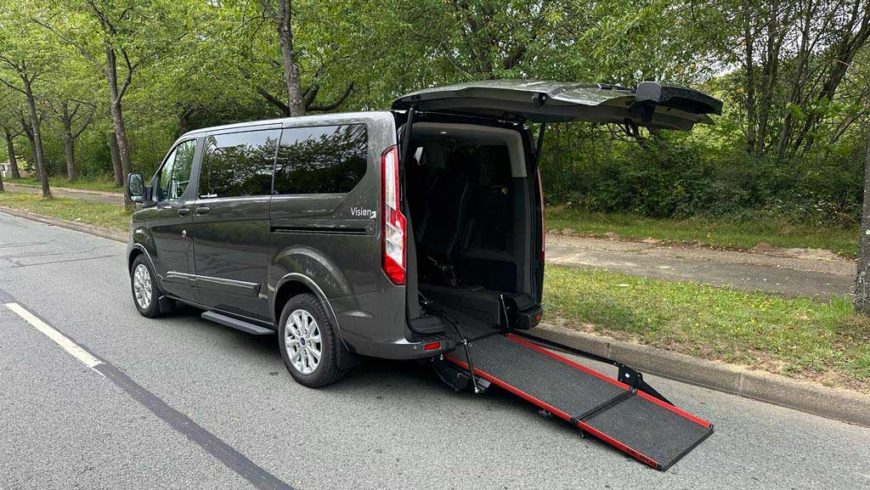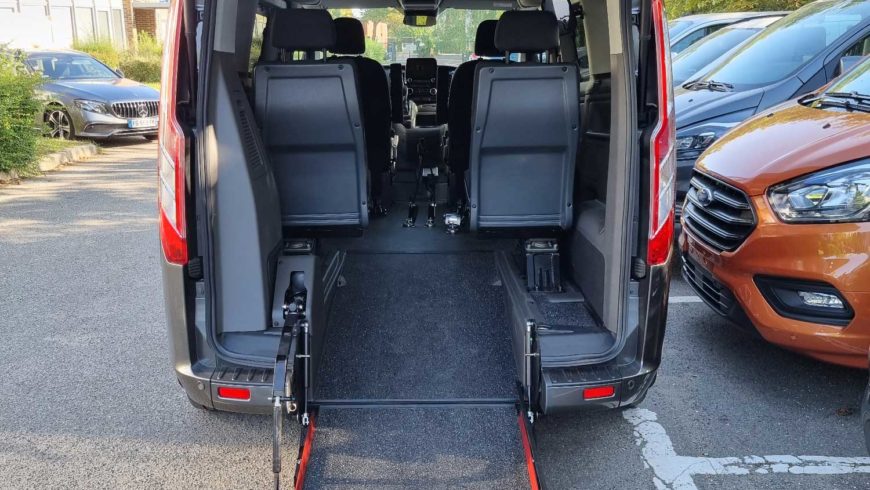 Le Ford Custom VISION permet via un hayon et une rampe motorisés d'accéder jusqu'au poste de conduite et à la place avant passager en fauteuil roulant.